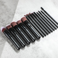 14 Stuks Veganistisch Synthetisch Hout Handvat Zwarte Make-Up Borstels Cosmetische Custom Private Label Make-Up Borstel Set
